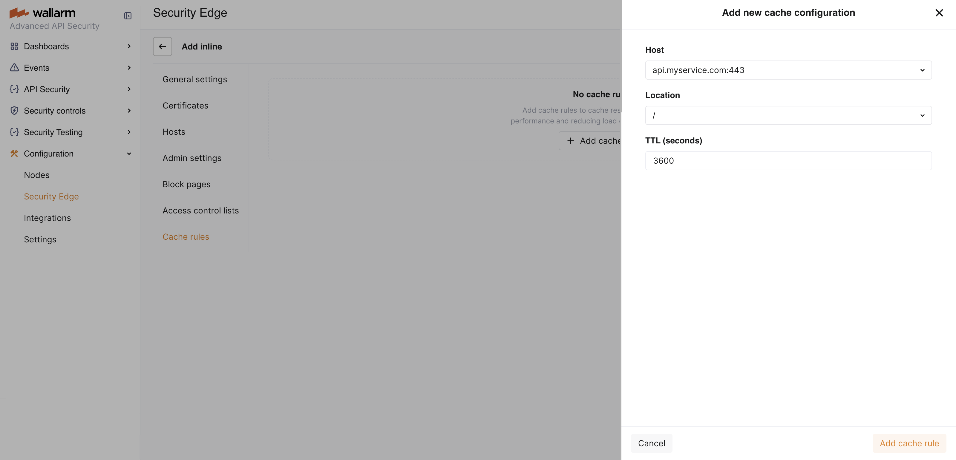 1. Go to Wallarm Console → Security EdgeInlineConfigureCache rules.