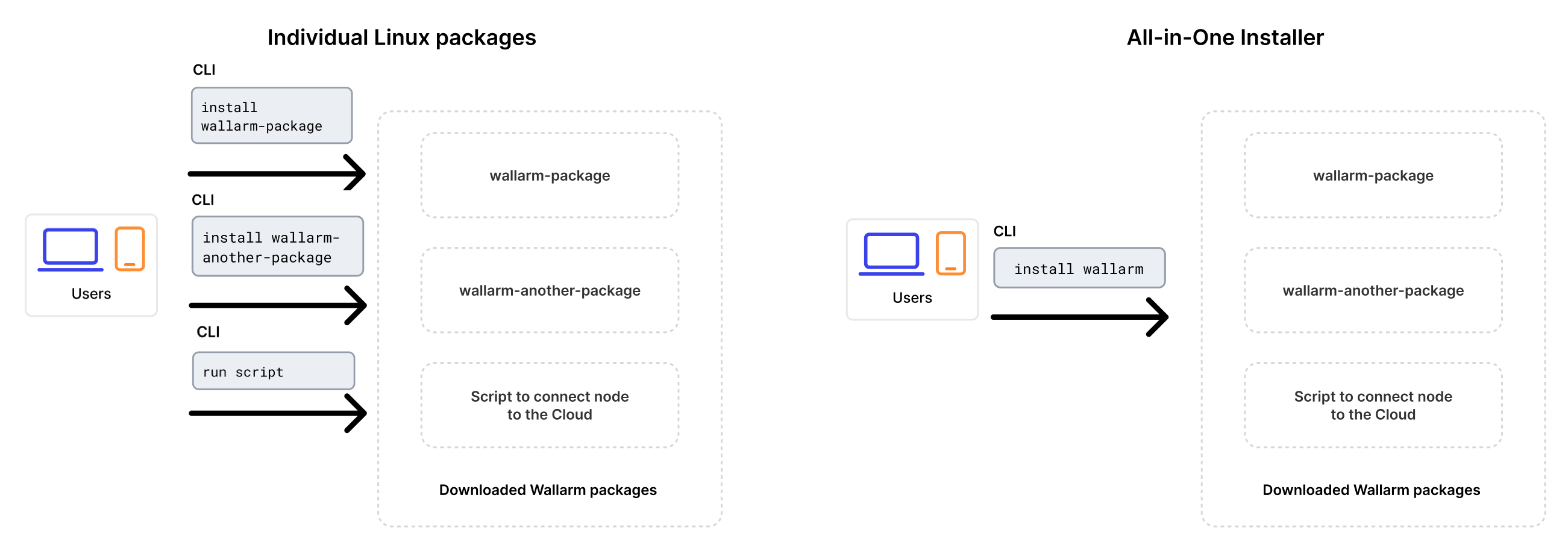 Upgrading is performed using Wallarm's all-in-one installer as the individual Linux packages have been deprecated. This method simplifies the upgrade process and ongoing deployment maintenance compared to the previous approach.